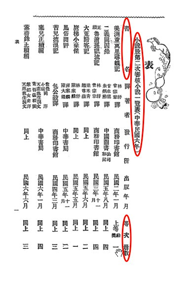 民國四年七月教育部擬定成立的通俗教育研究會“以研究通俗教育事項,改良社會普及教育為宗旨”?,具體事項分小說、戲曲、講演三股,小說股所掌事項中有一項是“關于新舊小說之審核”?,這也是小說股的工作重心。周痩鵑這本《叢刻》就在《小說股第二次審核小說一覽表(中華民國六年)》?里,表中所列“書名”為“歐美名家短篇小說叢刊”,“出版年月”為“民國六年三月”,“等次”為“上等給獎”,冊數(shù)為“三冊”。由此可確定小說股審核的是平裝三冊本,此處出版年月的記載證實了筆者上一部分對平裝初版發(fā)行時間當為3月的推測。而此處所列書名《叢刊》而非《叢刻》可知取自封面,這也是小說股審核小說擬定評語的一個依據(jù)。