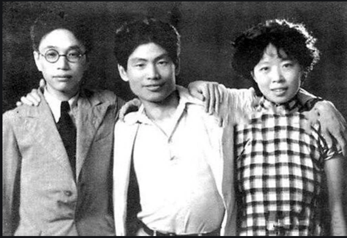 1936年,魯迅為去日本的蕭紅踐行。宴會(huì)后蕭紅、蕭軍(中)黃源在上海萬(wàn)氏照相館合影