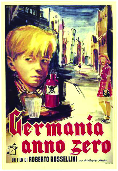 盡管拍攝孩子未必都要冷靜地、不附加任何煽情的自我投射,但一個(gè)冷靜客觀的角度確實(shí)會(huì)起到意想不到的效果。羅貝托·羅西里尼的《德意志零年》(1949)講述了在戰(zhàn)后廢墟上,極端匱乏的經(jīng)濟(jì)條件下,一個(gè)12歲的男孩被納粹黨徒中學(xué)老師教唆,將自己臥病在床的父親毒死(老師告訴他,病人不配活在世上),最后跳樓自殺的故事。這部影片是極為冷靜而克制的,我們很難覺(jué)察到這個(gè)孩子有明顯的情緒變化。他似乎冷靜地接受了教師灌輸?shù)募{粹思想、社會(huì)達(dá)爾文主義,但這也正說(shuō)明了這種思想并不是一天形成的。羅西里尼的攝影機(jī)不帶任何抒情化的情感色彩,卻處處令人警惕而揪心,最后孩子因?yàn)槭录÷?,被人排斥,面無(wú)表情地一躍而下的那一幕更是震撼人心。