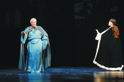 93歲老藝術(shù)家藍(lán)天野攜青年演員表演《蔡文姬》片段。本報(bào)記者 方非攝