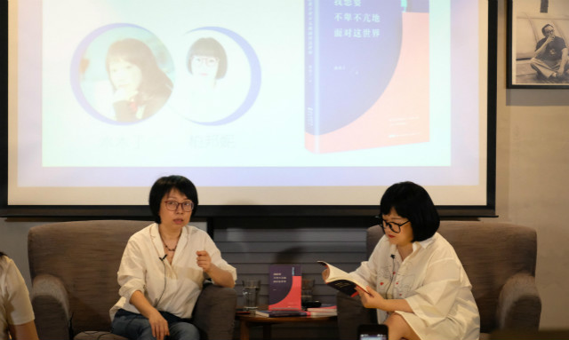 對(duì)談現(xiàn)場(chǎng)。(左:水木?。挥遥喊匕钅幔?/p>