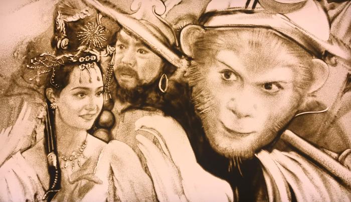 沙畫再現(xiàn)老版《西游記》中的人物。受訪者供圖