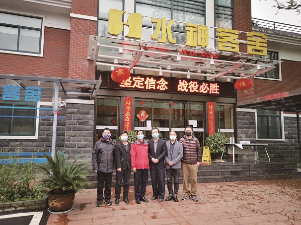 文坤斗、曾散、李朝全、李春雷、紀(jì)紅建、李修文(從左至右)在作家小分隊入住的快捷酒店前合影