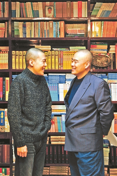 推開皮皮魯總動員文化科技有限公司會議室的門,兩位同樣光頭造型、同樣勁健挺拔的男士一起站了起來,這便是鄭淵潔和鄭亞旗父子了。不過,此次接受采訪的主角不是名聲響亮的“童話大王”鄭淵潔,而是初次當(dāng)導(dǎo)演的小鄭同學(xué)。