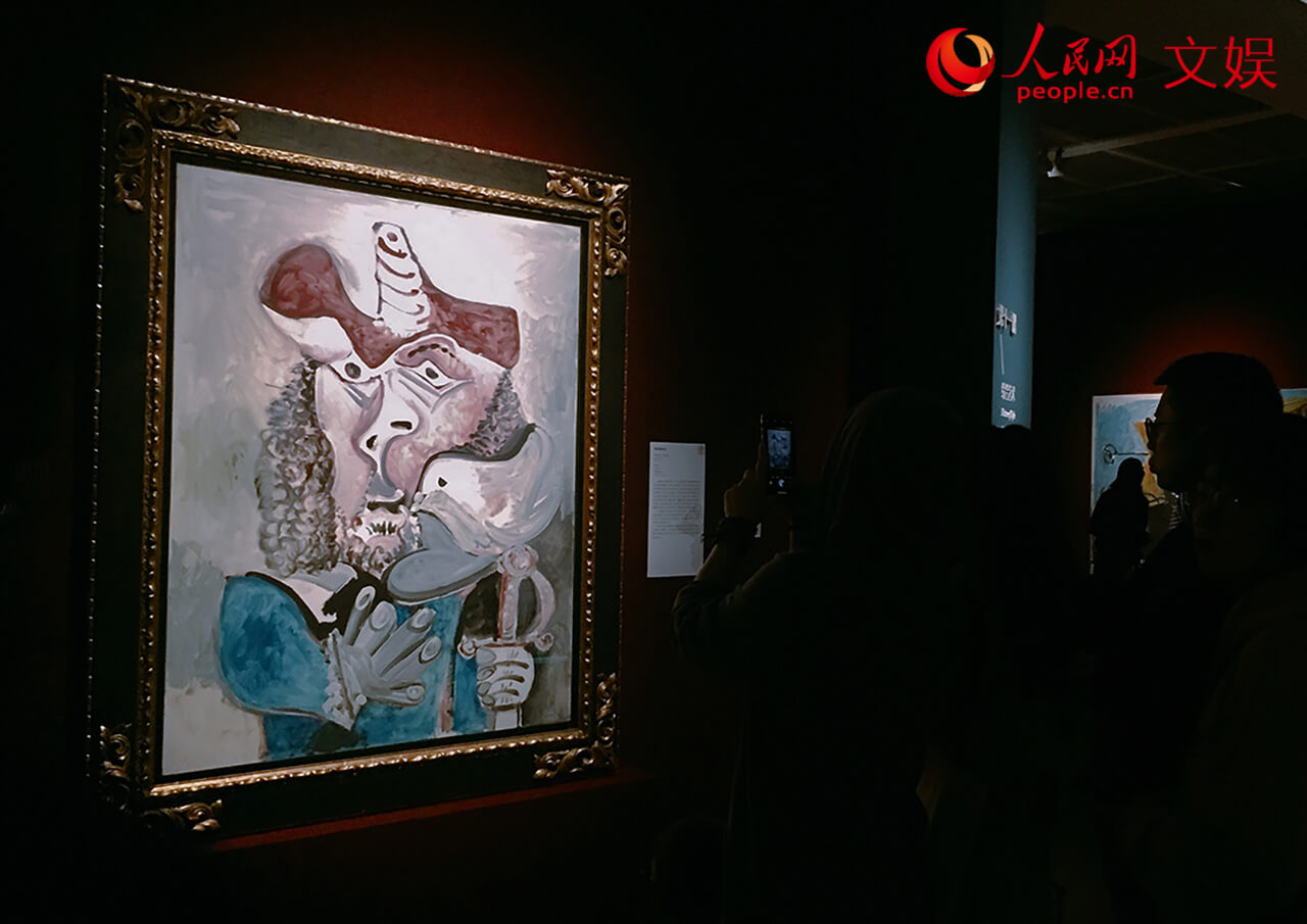 觀眾在畢加索《帶鳥的步兵》前駐足觀看。人民網(wǎng) 孟麗媛攝