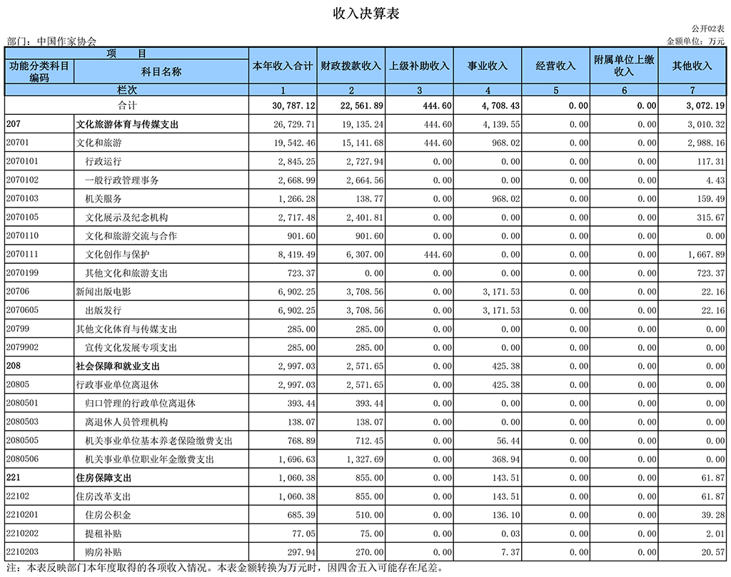 中國(guó)作家協(xié)會(huì)2019年部門(mén)決算