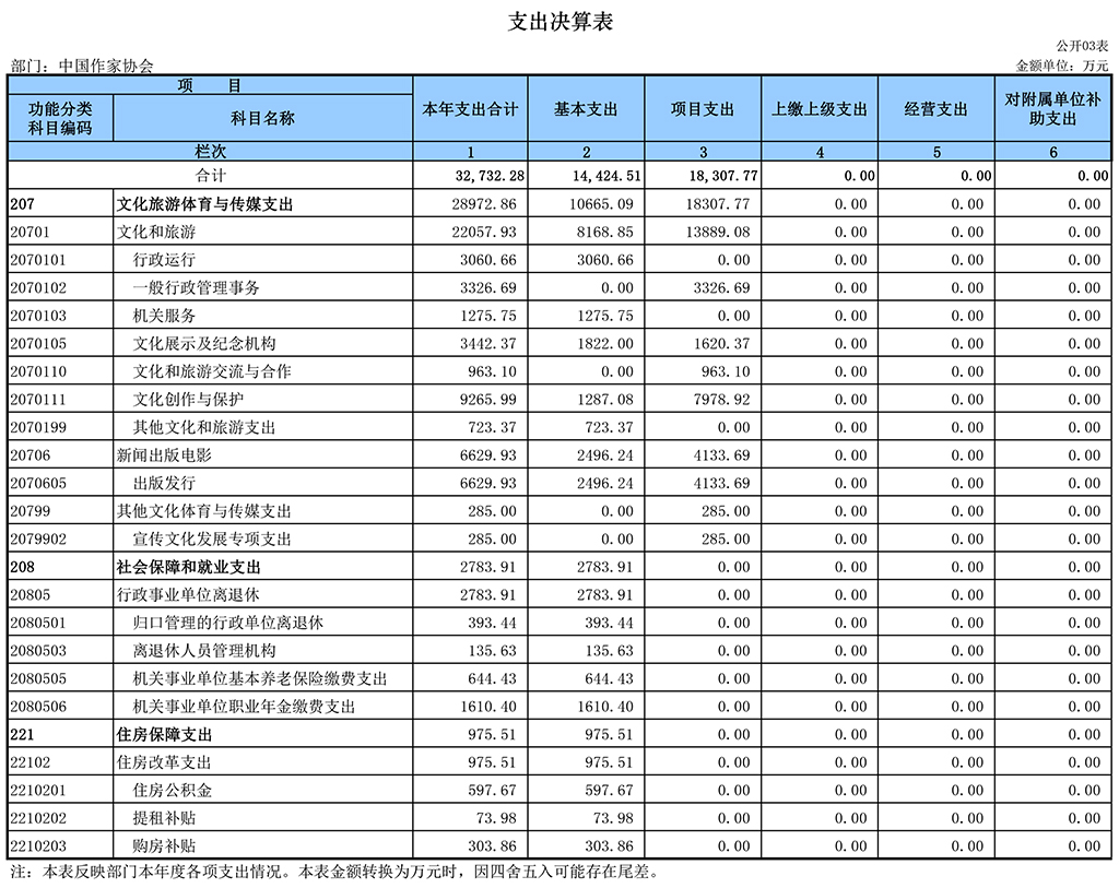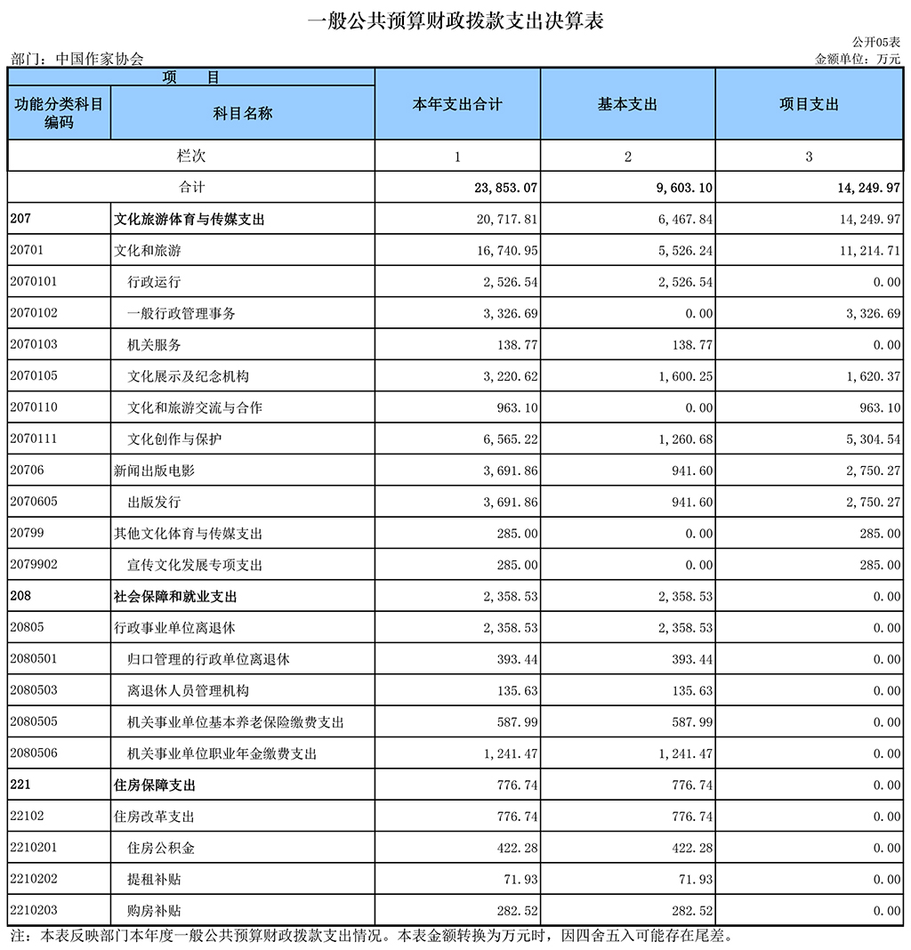 2019年中國(guó)作協(xié)部門(mén)決算表如下: