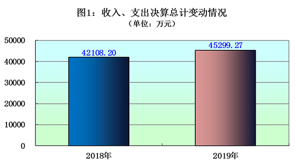 2019年度收、支總計(jì)45299.27萬(wàn)元。與2018年相比,收、支總計(jì)各增加3191.07萬(wàn)元,同比增長(zhǎng)7.58%。