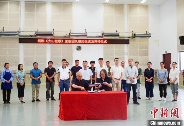7月17日,話劇《大山壯歌》主創(chuàng)團(tuán)隊(duì)簽約儀式及開排儀式在南寧市舉行。 蔣園園 攝