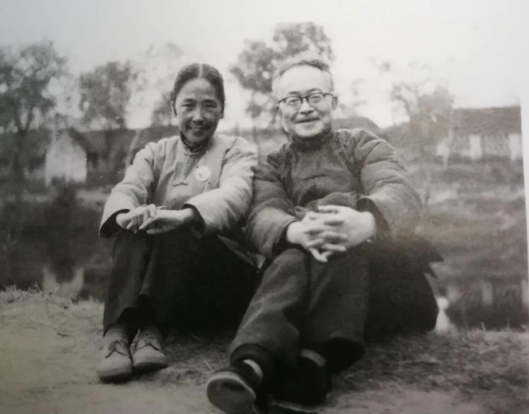 沈從文、張兆和在咸寧干?!?52高地”合影(1969年歲末)