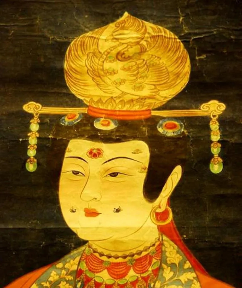 唐末五代敦煌壁畫中女供養(yǎng)人曹議金夫人的花黃臉飾(張大千?。?/span>