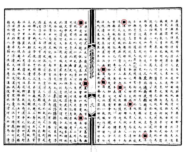 《永樂(lè)大典》清水篇,“無(wú)棣溝”以下,凡九處,棣字均作墨方塊(一一一三十,葉16)。