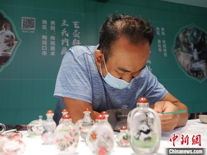 與張雪峰一樣,來自吉林省梅河口市的王興鵬也有著同樣的期盼。作為市級非遺項目藝壺軒王氏內畫的傳承人,王興鵬希望在非遺節(jié)上找到“耐得住寂寞”的年輕人學習內畫。“許多人沒有學藝的決心,三分鐘熱度一過,就不學了。”