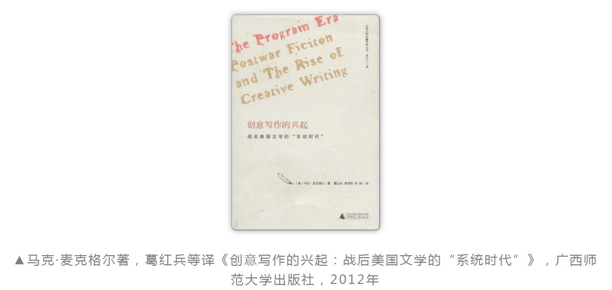 ??上海大學(xué)創(chuàng)意寫作叢書總序,見馬克·麥克格爾著,葛紅兵等譯《創(chuàng)意寫作的興起:戰(zhàn)后美國文學(xué)的“系統(tǒng)時代”》,廣西師范大學(xué)出版社,2012,第2、3頁。