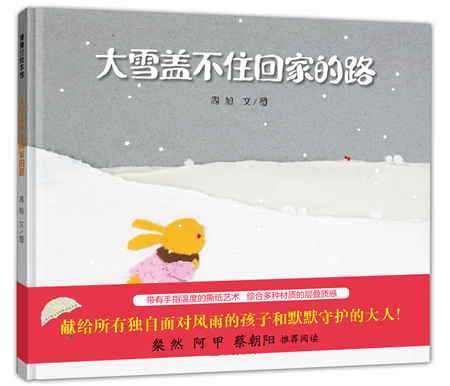 《滾雪球》《大雪蓋不住回家的路》《躺在草地上看云朵》這一系列的畫面處理上,我放棄了傳統(tǒng)的繪畫手法,首次嘗試用撕紙粘貼的形式。手工紙和手工宣紙的薄厚,粗糙的紋理,層層疊加后所產(chǎn)生的深淺變化,使畫面的色彩和層次變得更加微妙,更加豐富也更加韻味獨(dú)特了。我想一本繪本應(yīng)該像人一樣有自己的氣質(zhì)和性格,我想把這個(gè)系列做成比較文靜的圖畫書,這種嘗試也是想讓這幾本書的氣質(zhì)和性格和別的繪本能夠有所不同。
