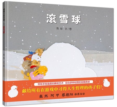 周旭:最好的教育是不露痕跡的教育,我在創(chuàng)作中從來(lái)不想刻意地強(qiáng)調(diào)教育意義,所有故事都是由心而走。在自然的情感流露中,總能給他人的心靈帶來(lái)或多或少的共鳴?!短稍诓莸厣峡丛贫洹防镂覍?duì)外婆的思念和一個(gè)希望見到她的小小心愿,這種普世的情感會(huì)成為一個(gè)小小的種子埋進(jìn)小讀者的心里,在他們的成長(zhǎng)過(guò)程中逐漸發(fā)芽。同時(shí)我并不急于向讀者說(shuō)明一個(gè)道理,而是可以在故事的細(xì)節(jié)處理上,做些特別的安排,讓他們?cè)诿恳淮蔚拈喿x中都能發(fā)現(xiàn)一些關(guān)聯(lián)。比如:在《滾雪球》里,如果問(wèn)小兔、小羊、小狗和小牛他們四個(gè)誰(shuí)的力氣最大?答案一定是小牛??闪庾畲蟮男∨L出的雪球?yàn)槭裁词亲钚〉哪??他們四個(gè)誰(shuí)的力氣最小呀?答案一定是小兔??闪庾钚〉男⊥?,她的那個(gè)雪球?yàn)槭裁礉L成了最大的呢?我們還可以問(wèn):要是沒(méi)有那個(gè)最大的雪球還能堆成兩個(gè)雪人嗎?答案一定是不能的。這個(gè)大雪球太重要了。要是沒(méi)有那個(gè)最小的雪球還能堆出兩個(gè)雪人嗎?答案也一定是不能的。這個(gè)小雪球也同樣很重要。雪球無(wú)論大小,缺哪一個(gè)都是不行的。這些細(xì)節(jié)不需要小讀者馬上就發(fā)現(xiàn),但在一次次的閱讀中可以逐漸地體會(huì)到。