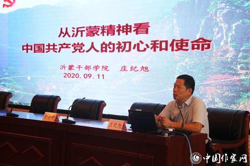 啟動儀式后,沂蒙干部學(xué)院教授莊紀(jì)旭從沂蒙精神的內(nèi)涵和形成過程以及如何弘揚(yáng)沂蒙精神三個方面為大家作了題為“從沂蒙精神看中國共產(chǎn)黨人的初心和使命”的主題講座。