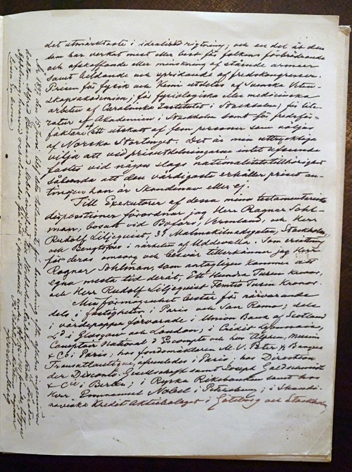 諾貝爾遺囑其中一頁