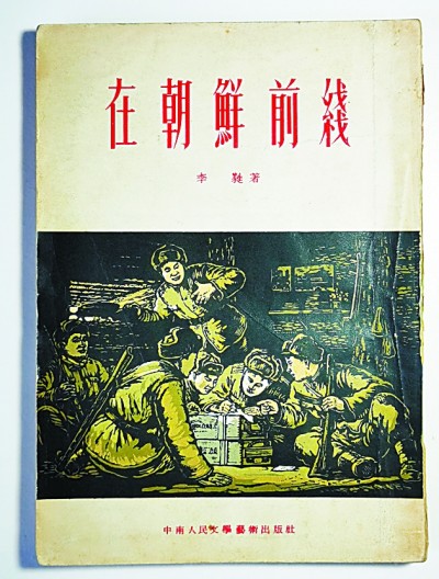 李蕤的通訊報(bào)告集《在朝鮮前線》,中南人民文學(xué)藝術(shù)出版社,1953年版,封面系古元木刻。