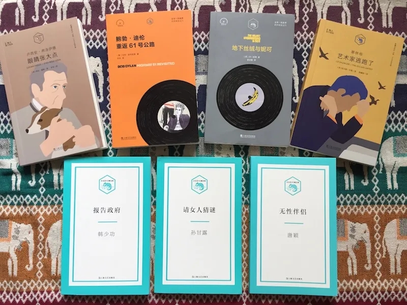 近十年前,在小精裝甚囂塵上的時期,曾以一套十種“新文藝現(xiàn)代藝術(shù)大家隨筆”的軟精系列,刷新了時人的袖珍本美學(xué)觀的上海文藝社,近來又推出了“小文藝·口袋文庫”,按內(nèi)容分為“知物”“知人”“小說”和“33?”等子系列,涵蓋隨筆、傳記和純文學(xué)等題材。給人的感覺應(yīng)該是一個開放性文庫,以后應(yīng)會納入更多的內(nèi)容。作為無勒口普通平裝本,這套小書把Logo、顏色區(qū)分、書脊的功能設(shè)計等文庫要素做到了極致,近乎尤物級,無言地詮釋著出版方所謂“小而簡就是美”的主張,令人愛不忍釋。我純憑興趣,暫入了八種,分別為西方流行文化系(“33?”)的《地下絲絨與妮可》([美]喬·哈佛著,姜亦朋譯,2019年1月版),《鮑勃·迪倫:重返61號公路》([意]馬克·波利佐提著,洪兵譯,2020年6月版);“知人”兩種:美國小說家塞林格的傳記《藝術(shù)家逃跑了》([美]托馬斯·貝勒著,楊赫怡譯,2020年2月版),英國藝術(shù)家盧西安·弗洛伊德傳記《眼睛張大點》([美]菲比·霍班著,羅米譯,2020年2月版);還有三種新銳小說:《請女人猜謎》(孫甘露著,2017年6月版),《報告政府》(韓少功著,2017年4月版)和《無性伴侶》(唐穎著,2017年4月版)。