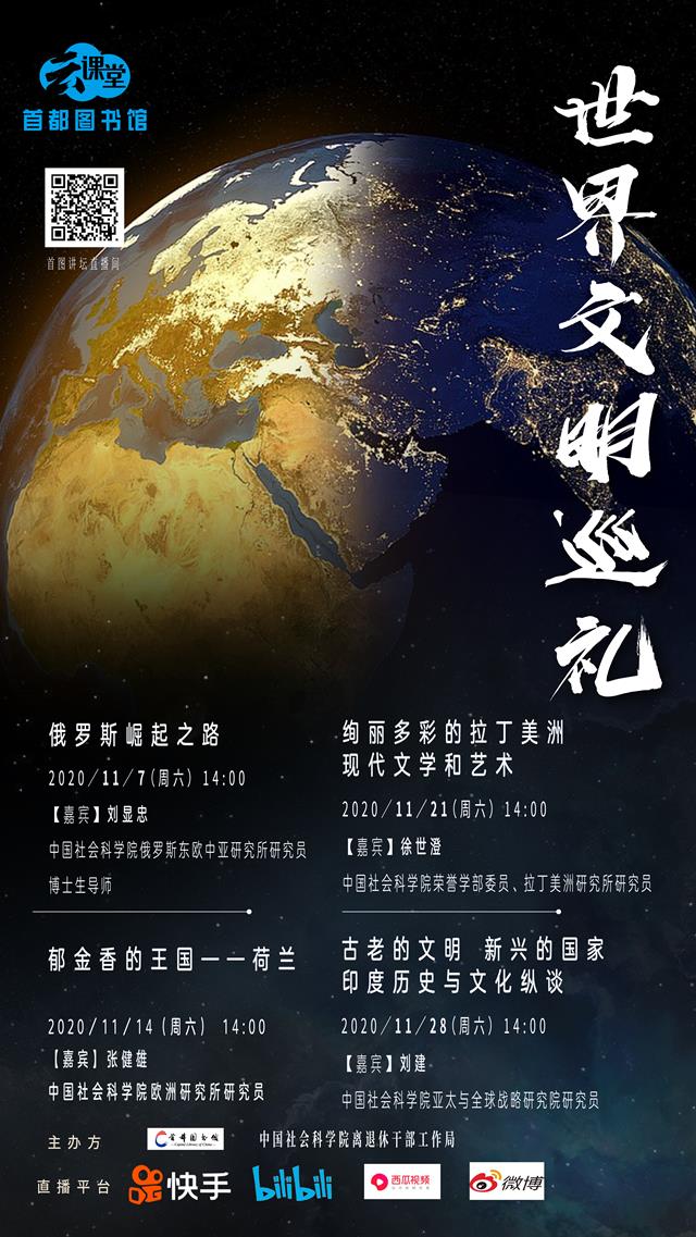 11月7日,由首都圖書館、中國(guó)社會(huì)科學(xué)院離退休干部工作局聯(lián)合主辦的“世界文明巡禮”系列講座將在首都圖書館正式開講。