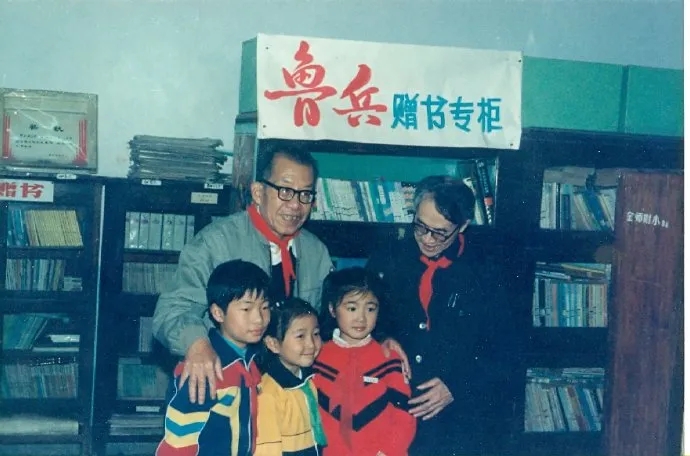 魯兵(后排左一)與小朋友們?cè)谝黄?/span>