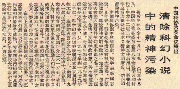 1983年11月2日,《人民日?qǐng)?bào)》刊文《清除科幻小說中的精神污染》
