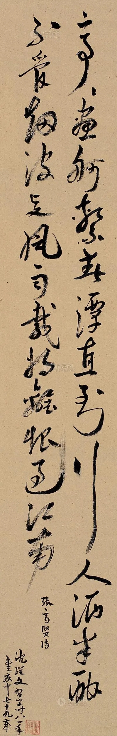 陳朗藏有黃賓虹、潘天壽、俞平伯、陸儼少諸家的書畫作品,唯有這幅《感事殘稿》長(zhǎng)期懸于床前。每次去謁見(jiàn)他,我推開(kāi)房門,眼前正方就是《感事殘稿》??梢?jiàn),陳先生格外鐘愛(ài)沈從文的書作。如今,這幅《感事殘稿》已由為唐湜送行的二幼女士收藏,也算有了一個(gè)新的好歸宿。