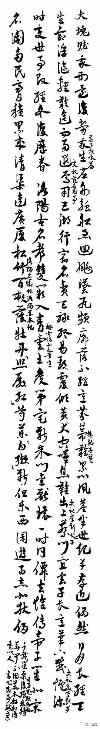 大塊賦我形,還復(fù)勞我生(莊子《秋水篇》)。虛舟觸舷急,回飆墜瓦頻。(韓非《呂覽》)。風(fēng)塵半世紀(jì),幸存近偶然。日月長(zhǎng)經(jīng)天,生命浮漚輕。難進(jìn)而易退(《史記》范蠡事),焉用五湖行。竊名貪天祿,終易致覆傾。黃犬空嘆息,難出上蔡門(《史記》李斯父子)。宜會(huì)子長(zhǎng)意,筆下感慨深(《史記》敘李斯事)。時(shí)變世事改,經(jīng)冬復(fù)歷春。洛陽(yáng)古名都,雙闕入青云(擬《古詩(shī)十九首》意)。王侯第宅新,朱門金獸環(huán)。一時(shí)同仙去,惟傳帝子笙。北宋名園多,民膏積累成。清渠連廣廈,松竹百畝蔭(《洛陽(yáng)名園記》《洛陽(yáng)花木記》)。牡丹“照殿紅”,芍藥“白纈”新。但樂(lè)西園游,易忘北狄侵。千載滄桑后,獨(dú)樂(lè)特著聞(司馬光《獨(dú)樂(lè)園》)。不因花木好,相許還以人。