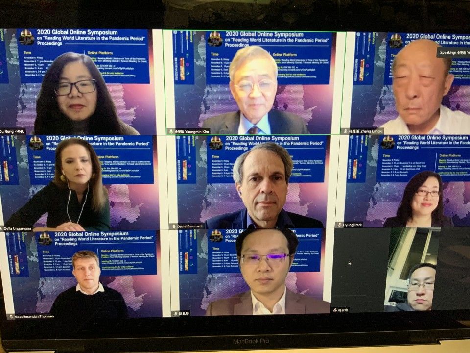 由杭州師范大學(xué)外國語學(xué)院與美國哈佛大學(xué)世界文學(xué)研究所、韓國東國大學(xué)、韓國國家研究基金會全球研究網(wǎng) (NRF-GRN) 和中國外國文學(xué)學(xué)會比較文學(xué)與跨文化研究會共同主辦的2020世界文學(xué)國際云論壇于北京時間11月6日-7日成功舉行。在全球新冠疫情蔓延的背景下,本屆論壇以“在疫情時代閱讀世界文學(xué)”為主題,各主辦方通過線上會場方式聯(lián)動舉行。國際比較文學(xué)學(xué)會主席香港城市大學(xué)張隆溪教授、美國哈佛大學(xué)世界文學(xué)研究所所長達(dá)姆羅什教授(David Damrosch)、杭州師范大學(xué)外國語學(xué)院院長歐榮教授、丹麥奧爾胡斯大學(xué)湯姆森教授(Mads Thomsen)、哈佛大學(xué)世界文學(xué)研究所副所長羅馬尼亞布加勒斯特大學(xué)翁古力亞努副教授(Delia Ungureanu),杭州師范大學(xué)科研院副院長陳禮珍教授、韓國東國大學(xué)兼中國杭州師范大學(xué)馬云基金講座教席金英敏(Youngmin Kim)教授、韓國延世大學(xué)樸炯智教授(Yungji Park)等海內(nèi)外專家、學(xué)者300余人共聚云端,交流思想、啟迪智慧。