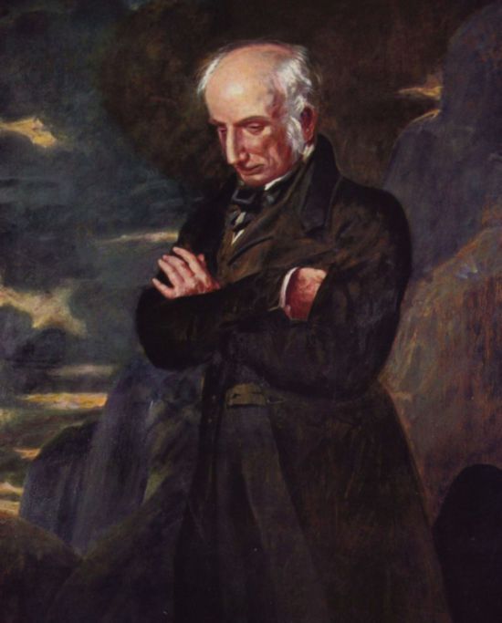 在有機會來英國與熟悉威廉?華茲華斯之前,水仙花是我對華茲華斯與英格蘭認識的重要的一部分。試問所有英語專業(yè)的人以及喜歡西方詩歌的人誰不知道“我孤獨地漫游,像一朵云(飛白 譯)”(I wandered lonely as a cloud)這首在國內被等同于、甚至以《水仙花》命名的詩呢?來到英國的第一天,在飯桌上,從沒進過一天學堂的英國老房東聽我說研究華茲華斯時,出口誦出“I wandered lonely as a cloud”。這是多么讓人驚嘆華茲華斯以及這首詩的受歡迎程度。春天到來的時候,房東在院子里喊我去看“華茲華斯的水仙花”。那是2014年春天,我在英國度過的第一個春天。那一年,我在家里、路邊、學校里、花園里、湖邊、樹下看到了華茲華斯筆下隨風飄動比銀河里的星星還要明亮的金黃色的水仙花。此刻,英格蘭的春天濕噠噠的,風、雨、雪交錯。但,窗外院子里的水仙花明亮嬌艷金燦燦地開在我的眼前。呵,華茲華斯的水仙花!華茲華斯畫像
