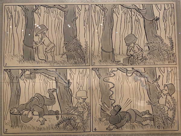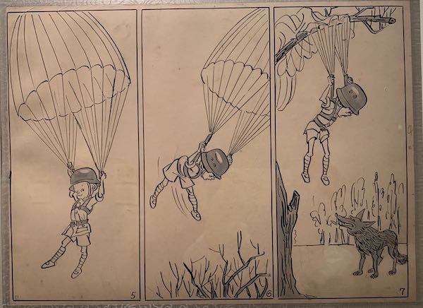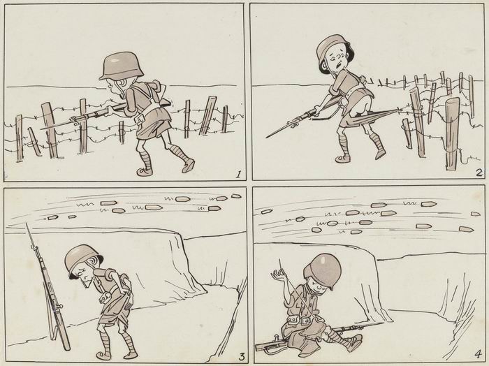 《三毛從軍記》很多源自我父親親眼所見,所以這套作品1946年在《申報》發(fā)表后,很多人都喜歡看。我父親沒有參過軍,但是曾多次到最前線慰問當時的抗日部隊,知道他們?nèi)绾慰谷?、如何打仗的。《三毛從軍記》也是中國第一部軍旅漫畫,甚至后來好多人把他這部作品和捷克作家哈謝克創(chuàng)作的《好兵帥克》相提并論。而且,《三毛從軍記》是中國第一部沒有文字的長篇漫畫。