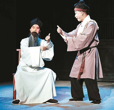 京劇里的文人形象一直就很少。這或許是因?yàn)樵瓉砭﹦∮^眾構(gòu)成非常復(fù)雜,追求的是雅俗共賞,不太會為文人專門寫戲。20世紀(jì)80年代以來,從陳亞先的京劇《曹操與楊修》到鄭懷興的晉劇《傅山進(jìn)京》,一種文人寫文人的戲曲新傳統(tǒng)隱約出現(xiàn)。但《曹操與楊修》也罷,《傅山進(jìn)京》也罷,都是或者寫文人在政治事件中的沉浮,或者寫文人與政治人物的糾葛,對于創(chuàng)作者來說,都有著可以依憑的事件去編織劇作。而黃州時期的蘇東坡,在他的個人生涯中,這一人生階段的政治博弈已經(jīng)失敗,退守黃州已經(jīng)是無可奈何。創(chuàng)作者要寫這一階段的蘇東坡,既沒有政治事件可以鋪陳,也沒有政治人物可以對話。如此要直面蘇東坡的內(nèi)心世界,確實(shí)太難了。這有點(diǎn)像是回到當(dāng)年汪曾祺寫《范進(jìn)中舉》,要在日常瑣事里做出文章。但《范進(jìn)中舉》好歹還有個《儒林外史》的底子,而蘇東坡在黃州,只有寫詩詞曲賦的零散材料,怎么寫?
