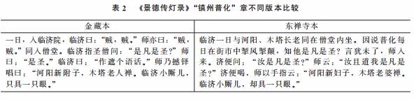 《景德傳燈錄》是北宋真宗朝吳僧道原所作的禪宗燈史,其書集錄自過去7佛,及歷代禪宗諸祖共1701人的傳燈法系。此書的版本約可分為四個(gè)系統(tǒng):以金藏廣勝寺本為代表的中原藏經(jīng)系統(tǒng),以東禪寺本為代表的南方藏經(jīng)系統(tǒng),元延祐三年(1316)希渭刻本系統(tǒng),《萬僧問答景德傳燈全錄》系統(tǒng)。通過不同版本間的對(duì)校,可以發(fā)現(xiàn)大量異文,這其中既有“非實(shí)質(zhì)性異文”,也有“實(shí)質(zhì)性異文”。