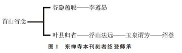 東禪寺本何以要用《天圣廣燈錄》中對(duì)南泉普愿、臨濟(jì)義玄的記載代替金藏本《景德傳燈錄》中的記載呢?通過考證發(fā)現(xiàn),東禪寺本《景德傳燈錄》的刊刻者紹登為臨濟(jì)宗僧人。其師承圖見圖1。