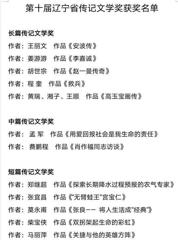 第十屆遼寧省傳記文學(xué)獎發(fā)布