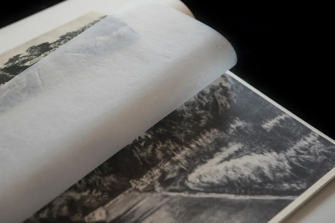 這本書最終的呈現(xiàn)并沒有多少文字。描繪同一對象的攝影和素描作品以對開頁的形式“面對面”,同時一張雪梨紙成為分隔“對照”雙方的媒材,質(zhì)感輕薄柔絨,朦朧的透視效果在發(fā)生對照的兩個主體間既產(chǎn)生了聯(lián)結(jié),又構(gòu)成界線,生發(fā)出微妙的氛圍。