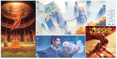 ①《大魚海棠》海報。② 《原神》場景圖。③《姜子牙》海報。④《大圣歸來》海報。 制圖:李潔