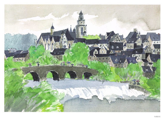 《旅之繪本》也是最能代表他藝術(shù)才華的作品。安野光雅喜歡用水彩作畫,著色淡雅,運(yùn)用水彩顏料的無窮變化營造出端莊穩(wěn)重、溫馨怡然的氛圍,溫潤氣息彌漫畫間。他的畫富有傳統(tǒng)日本畫的韻味,同時, 他又將西洋繪畫中的寫生和素描融入創(chuàng)作中,豐富的細(xì)節(jié)尤其令人稱道。