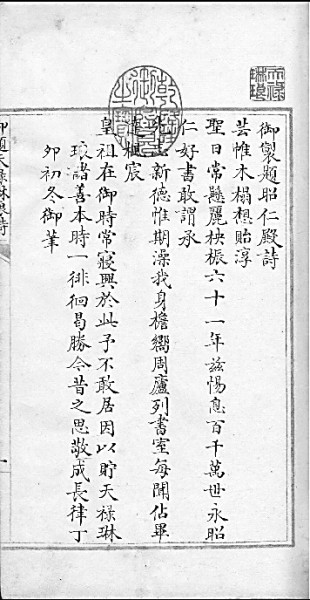 對于乾隆為何將善本置于昭仁殿,前編書目中有《御制題昭仁殿詩》可供考證。詩下有注云:“皇祖在御時,常寢興于此?!泵鞒实奂绊樦?、康熙二帝的寢宮在乾清宮,但該殿太過巍峨寬大,不太符合中國古人的居住觀念。所以康熙皇帝真正的寢宮是乾清宮的東配殿昭仁殿。因為是皇祖居所,故而乾隆說:“予不敢居,因以貯天祿琳瑯諸善本?!庇衷谠娭性疲骸昂脮抑^承先志,新德惟期澡我身?!币鉃樵诖俗x書,可以繼承皇祖之志,澡身浴德。昭仁殿位于紫禁城乾清宮東側,是一座面闊三間、有獨立院落的建筑,自此直到清末,這里便成為清宮的善本書庫。