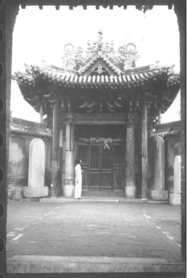 林徽因后來(lái)經(jīng)常抱怨梁思成,整個(gè)蜜月下來(lái)沒(méi)給她拍幾張像樣的照片。因?yàn)榱核汲删褪桥慕ㄖ臅r(shí)候把她帶上,當(dāng)作一個(gè)尺度人,我們一般叫作scale(標(biāo)尺),這一點(diǎn)在這張照片里體現(xiàn)得淋漓盡致,用她烘托建筑的宏偉。