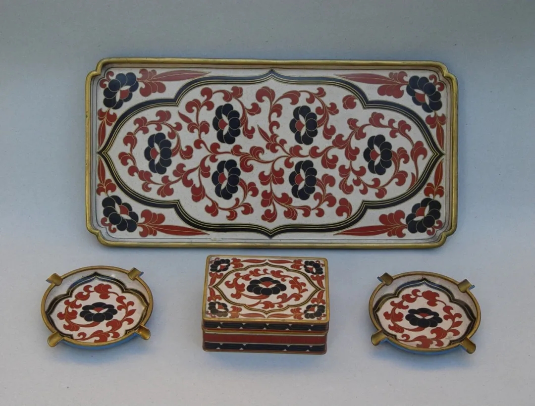 林徽因參與革新中國(guó)清代的景泰藍(lán)工藝,她輔導(dǎo)當(dāng)時(shí)剛歸國(guó)的常沙娜,利用敦煌紋飾設(shè)計(jì)的一套煙具,如此精美。