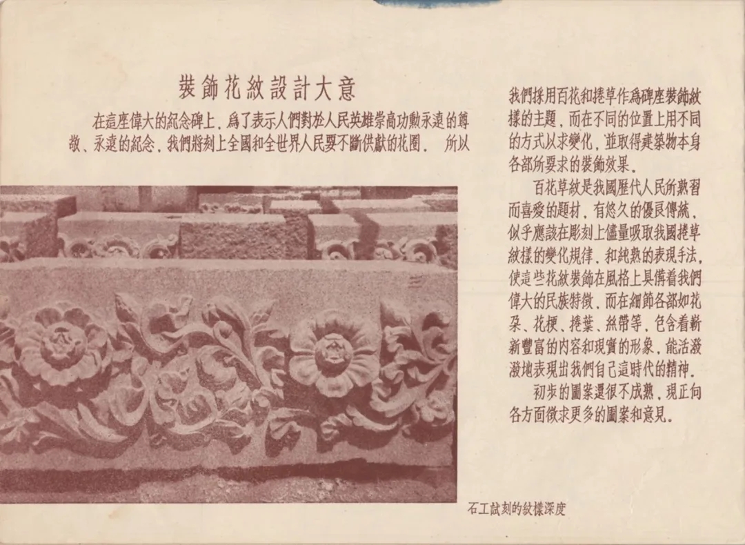 當(dāng)時(shí)紀(jì)念碑工地現(xiàn)場(chǎng),有紋飾試刻的小樣