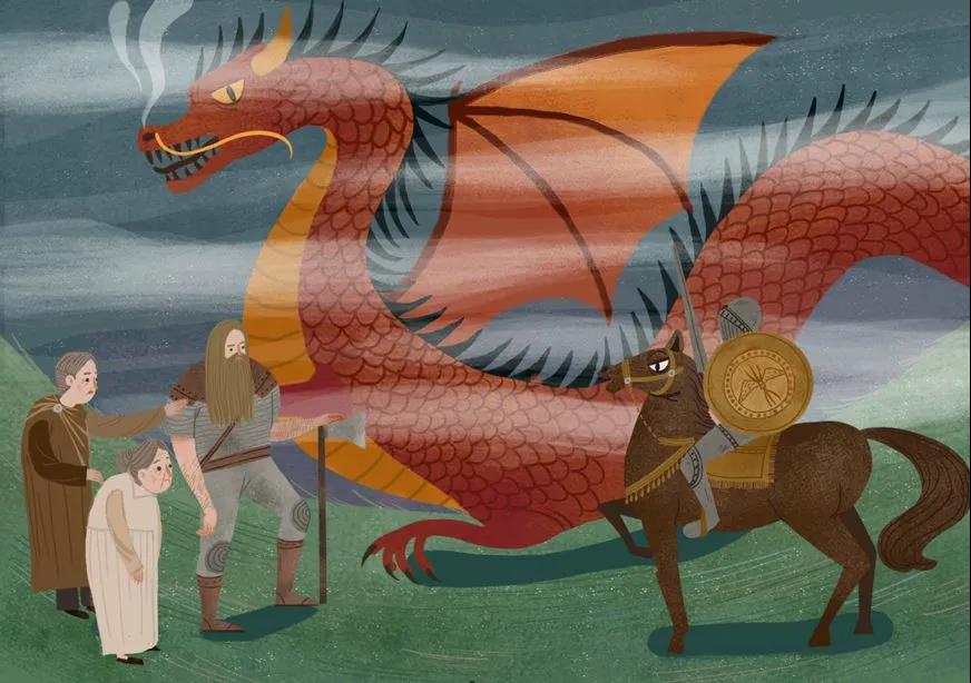 《被掩埋的巨人》里出現(xiàn)的老夫妻、勇士、騎士和巨龍。