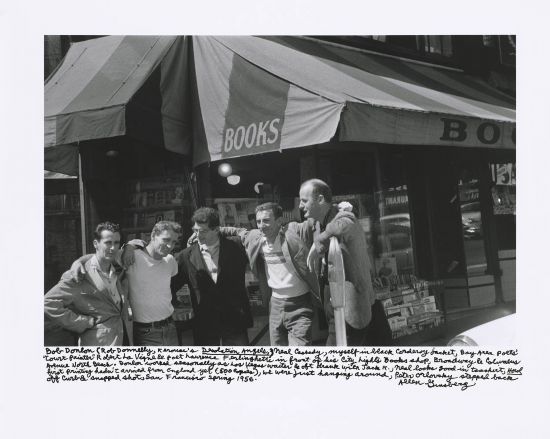 “垮掉的一代”核心成員們在城市之光門口,攝于1956年。從左至右:鮑勃·唐林,尼爾·卡薩蒂,艾倫·金斯堡,羅伯特·拉文奇,勞倫斯·金斯堡。