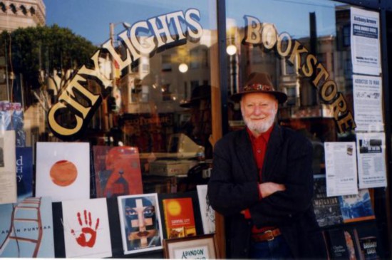 勞倫斯·費(fèi)林蓋蒂在城市之光書店前。