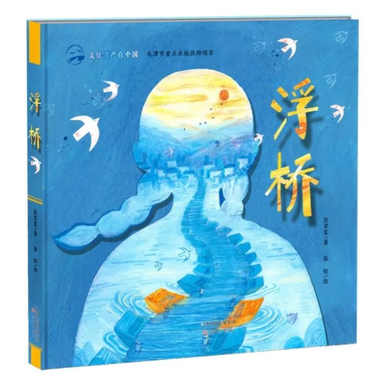 這部童書的畫面創(chuàng)作用多層次的藍色和暖黃來呈現(xiàn)浮橋與木船形象,多個分鏡頭特寫穿插在跨頁大場景中,恍惚之間,想起了沈從文《邊城》里的氛圍,那種敏感微妙的兒童視角與牧歌般的山水場景,一直在拓寬著無數(shù)代人的心靈疆域。