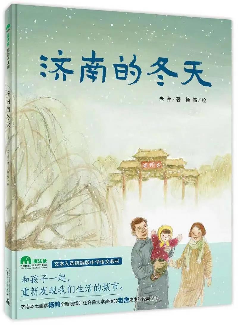 這是一本能夠充分體現(xiàn)繪本魅力的作品。老舍先生的散文《濟南的冬天》是小時候在課本中就讀過的,文字之雅自不必說,但作為一篇寫景的文章,按常理想來是很難作為繪本的素材的,濟南本土畫家楊鵓卻另辟蹊徑,從老舍的文字出發(fā),結(jié)合自己的記憶和觀察,用全知視角對近百年前的濟南城做了一次純美的紙上再現(xiàn)。