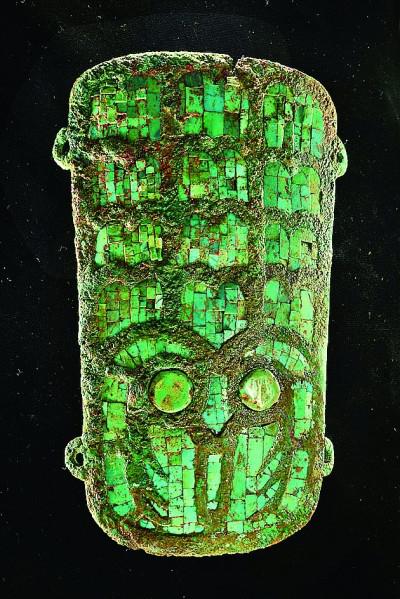 在1986年三星堆祭祀坑出土的文物中,還有鑲嵌綠松石銅牌飾與二里頭出土的頗為相似?!岸镱^遺址的鑲嵌綠松石銅牌飾是貴族專用的身份標志物?!壁w海濤介紹,相比之下,二里頭的銅牌鑲嵌綠松石,工藝難度顯然更高。這些也再次印證,夏人禮儀曾在古蜀文明中流淌。