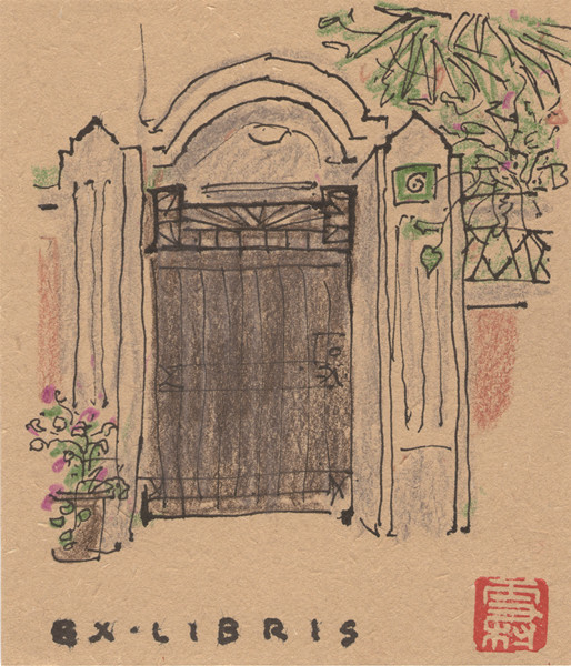 為自藏1996年7月4日參加紀(jì)念茅盾誕辰100周年大會(huì)所得《茅盾》畫傳作藏書票,圖得自2020年10月7日上海山陰路大陸新村茅盾舊居寫生,羅雪村作
